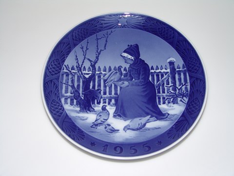 Beskrivelse: Royal Copenhagen Juleplatte (Kongelig, kgl) fra 1955 "Fanø Pige fodrer fugle". Designed af Kai Lange. I fin og hel stand. 1. Sortering