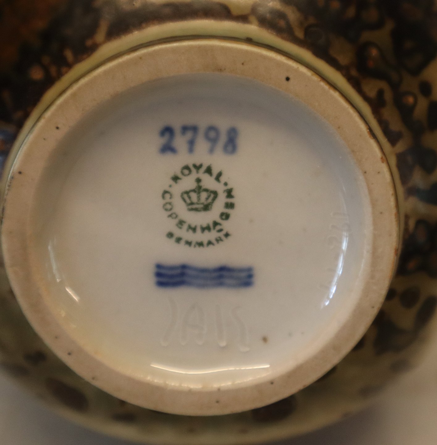 2798 Kgl. Firkantet Jais Nielsen vase med låg og relief dekoration Sung Glasur 14 x 14
