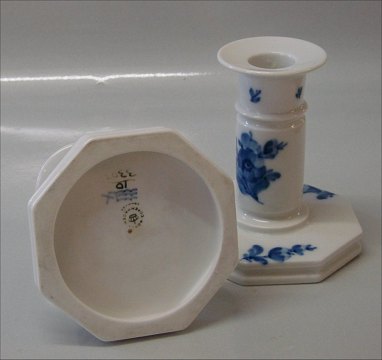 Beskrivelse: Kongelig Dansk Porcelæn Blå Blomst 3303-10 Et par lysestager 3303-10 Et par lystestager 11 cm I fin og hel stand
