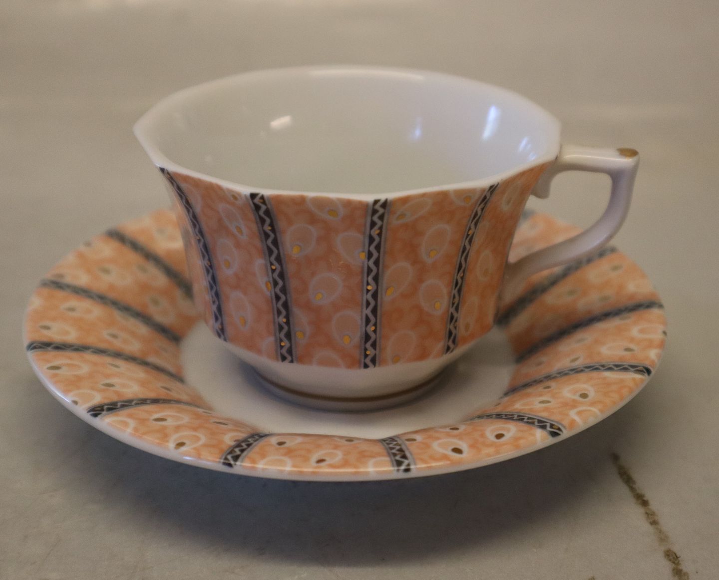 The grey pattern is number 1201, terracotta is 1202 and the serving pieces that will match both colors is 1203. espresso