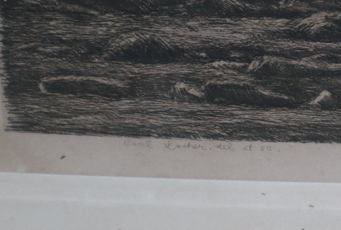 Etching: Carl Locher 1887 Paris 42 x 53 cm including the old frame and glass. Motif Shrimp fishers in Bretagne, France