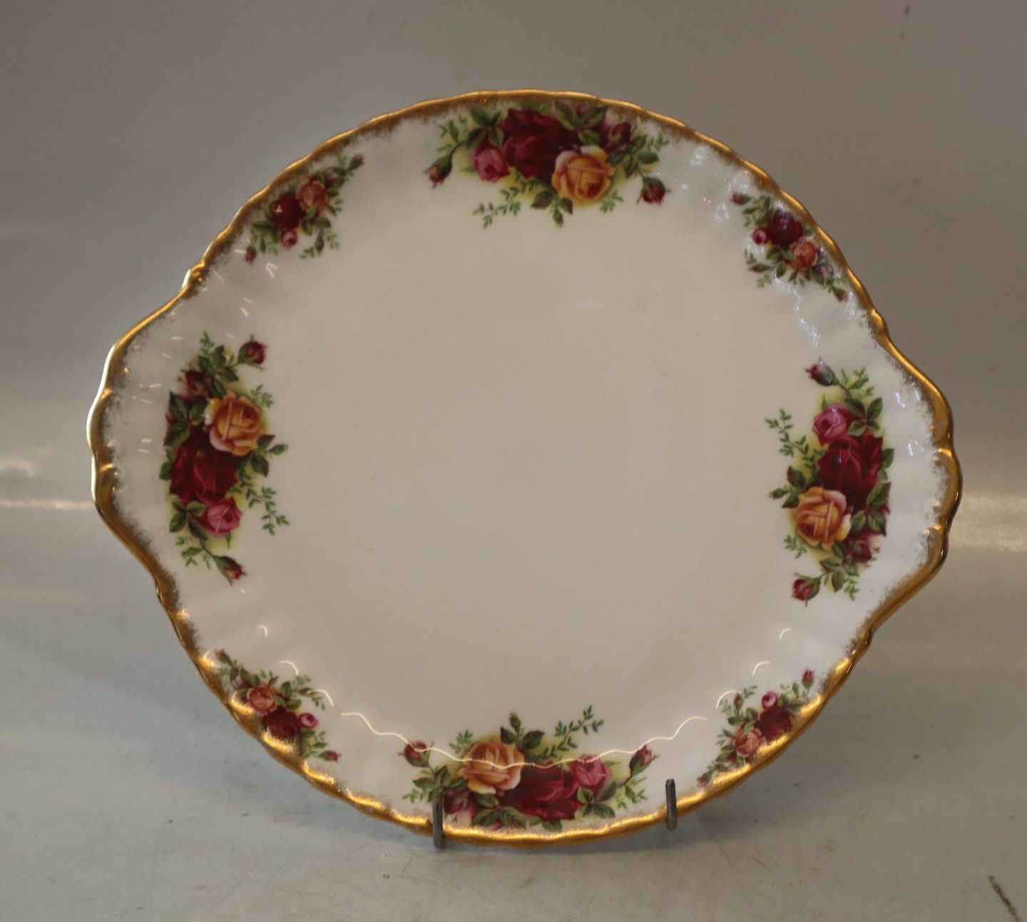Kagefad med ører 26 cm Landsbyrose Royal Albert Old Country Roses Bone China England. I God brugt stand
