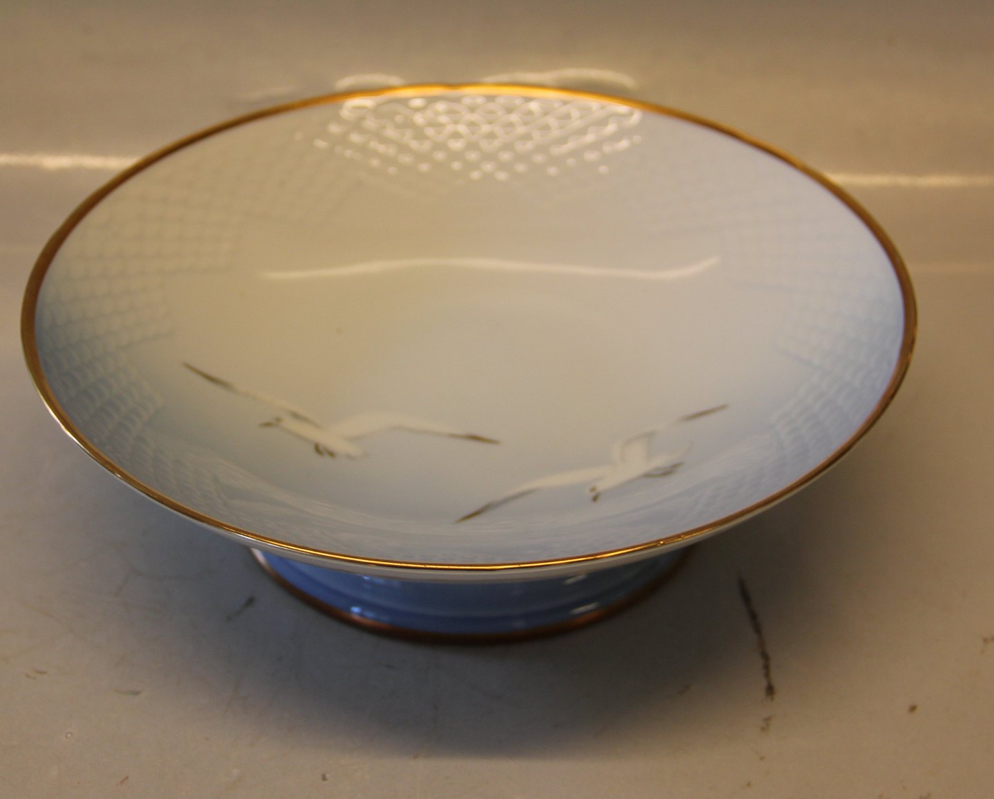 206 Stor skål på fod 24 cm Bing & Grøndahl Mågestel med guldkant. I hel og fin stand (429)