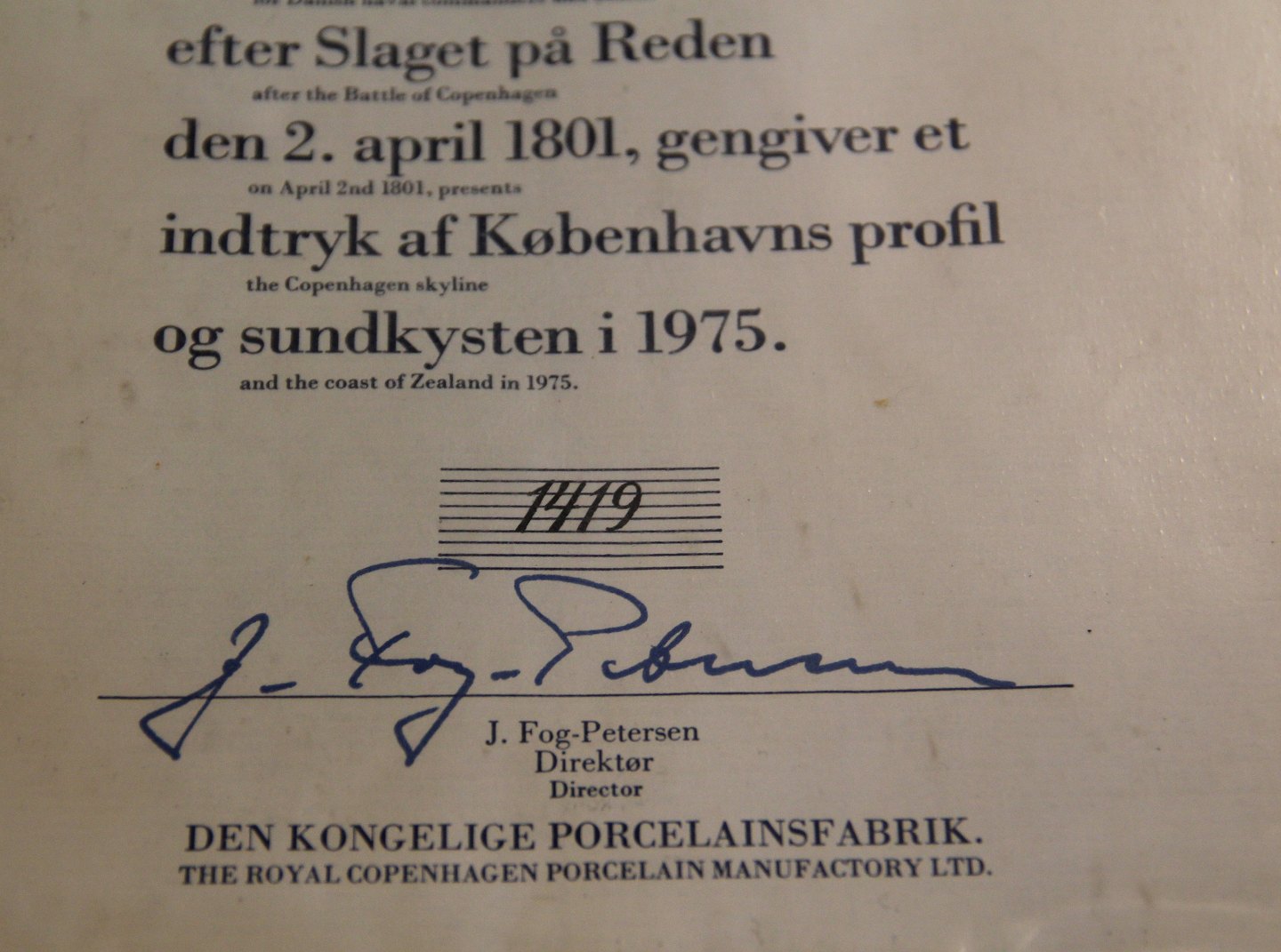 1 pcs x #1419 of 2500 with Certificate and original box please ask for price DKK 3500