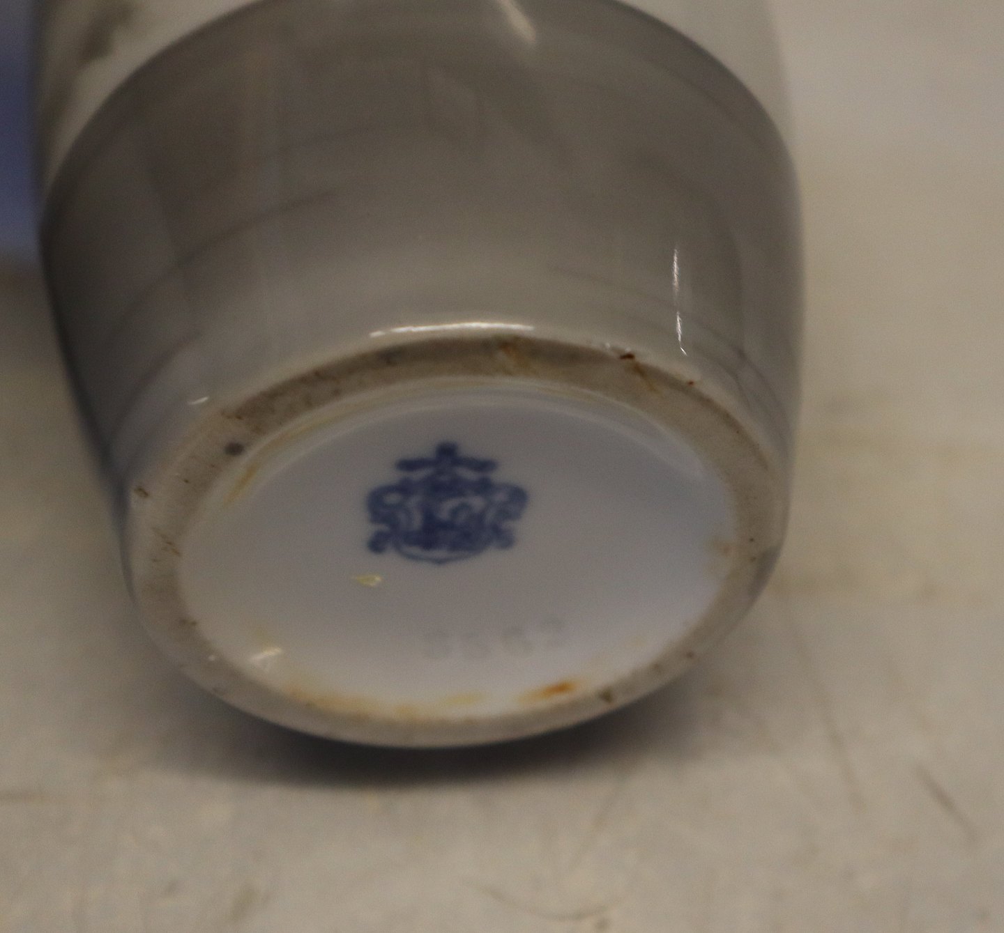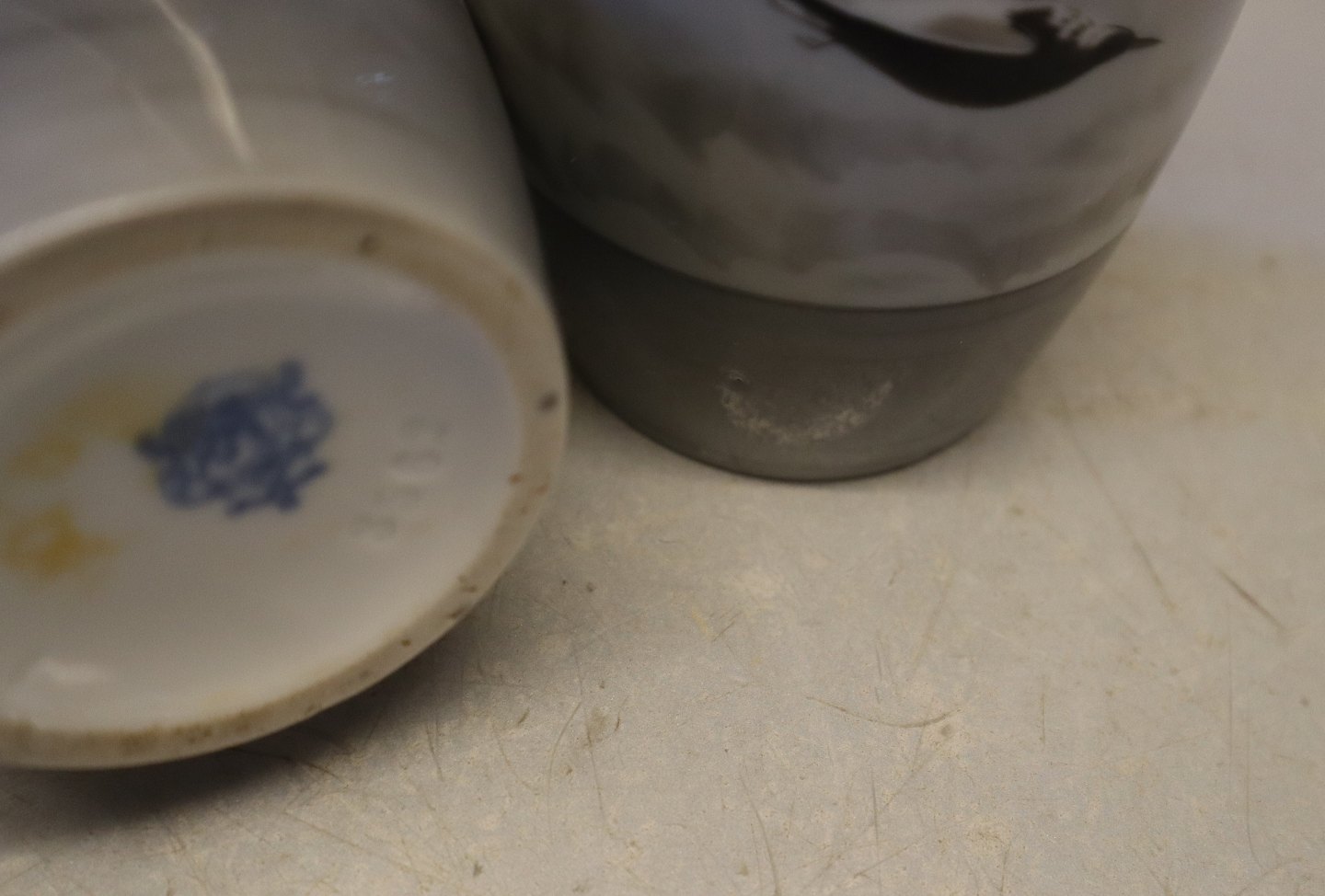 Beskrivelse: Par tyske? Heubach? 3562 Art Nouveau vaser med måger 11.5 cm Jugendstil Kender nogen stemplet? I hel og fin stand