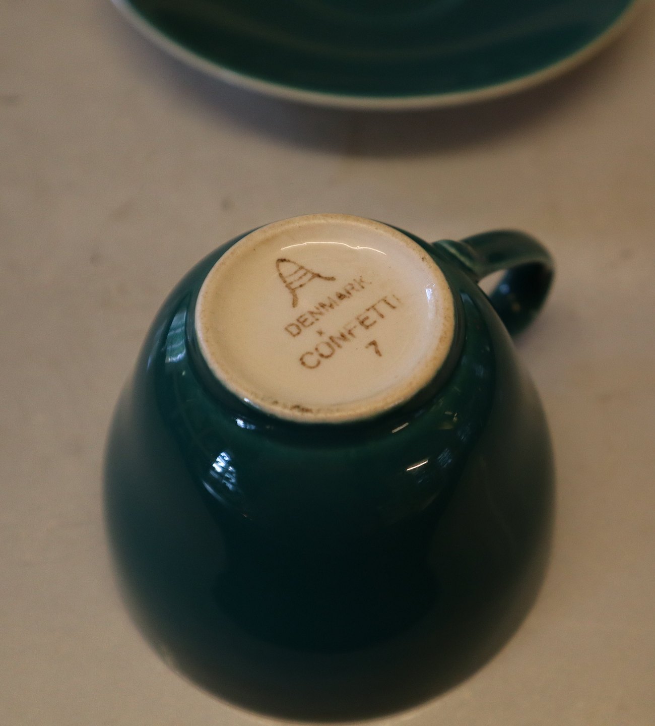 07 Kaffekop & underkop 14 cm, Mørkegrøn Confetti Royal Copenhagen Aluminia fajance spisestel - kaffestel