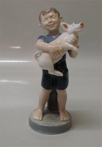 Description: Royal Copenhagen 4530 August - boy with piglet Design Hans Henrik Hansen 1894-1965. HHH 1st. In mint and nice condition