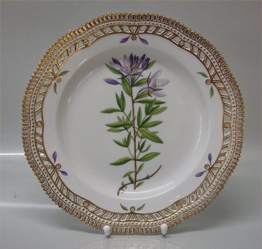 Kongelig Dansk Flora Danica 20-3553 Fad til stor rund frugtkurv, flad tallerken med gennemskåret bort 25 cm Nyt nr 637 (1948)