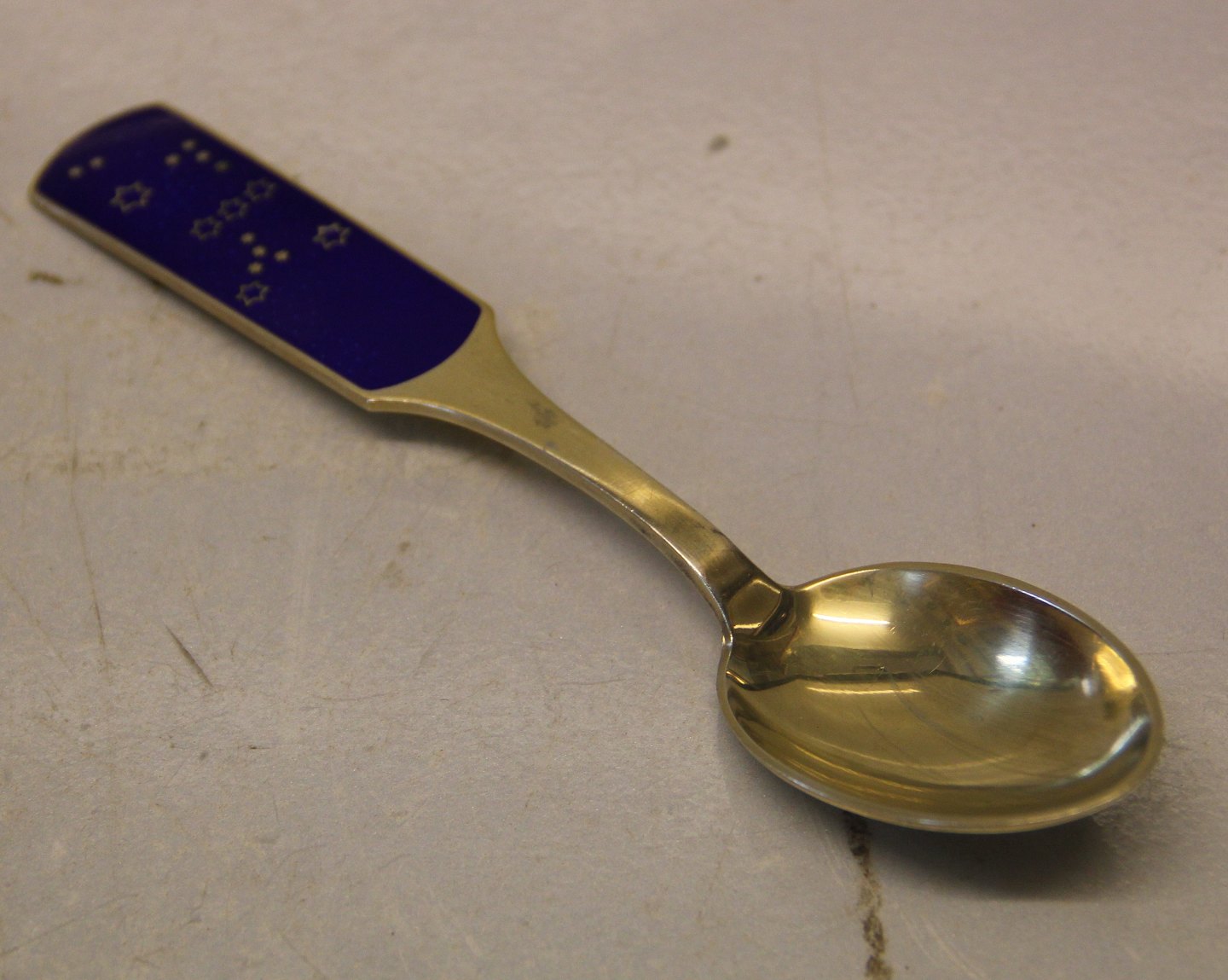 Beskrivelse: Anton Michelsen Juleskeer 1964 Stjernebilledet Orion Forgyldt sølv med emaljedekoration. Design: Inger Hanmann