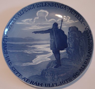 Description: Bing and Grondahl Commemorative Plate #67 Iceland from 1930. Is made for the 1000th year anniversary of the Icelandic parliament. Designed by Achton Friis and measures 20,2 cm