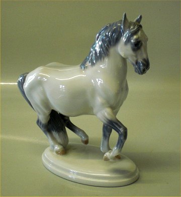 Beskrivelse: Kgl. figur hingst 4752 Kgl. Lippizaner Hest Jeanne Grut 19 cm fra Royal Copenhagen I hel og fin stand
