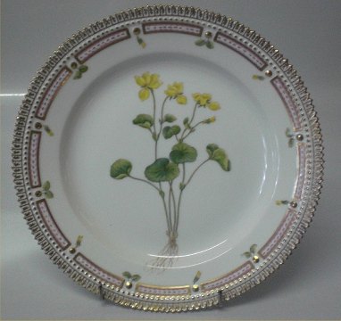 Description: Royal Copenhagen Flora Danica 20-3550 Viola biflora L Luncheon Plate New # 622 8,75" (Dated 1969-74). Floral decoration on pearl pattern with gold rim. Factory first and in nice and mint condition