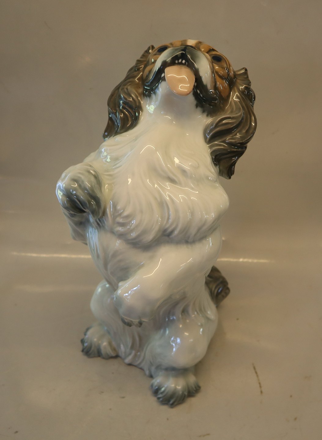 Dahl Jensen hund 1169 Pekingeser (Stor) 37 cm. Mærket med kongelig krone og DJ Copenhagen i hel og fin stand.