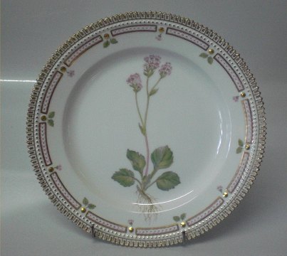 Beskrivelse: Royal Copenhagen Flora Danica 20-3550 "Laxifraga nivalis L" Frokosttallerken. Nyt nr. 622 22 cm (1969-74) Blomstermotiver på guldbelagt perlestel. 1. sortering i fin og hel stand