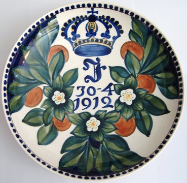 Beskrivelse: Aluminia Julianeplatte fra 1912. Måler 24,5cm og er i fin stand. Lidt krakalering some normalt forekommer på fajance ting.