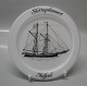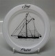 Beskrivelse: Skibsplatte, Holmegaard 19,5 cm Serie af glasplatter med silketryk af danske skibstyper med 1971 til 1990. Design Michael Bang (1944 -) for Holmegaard Glasværk