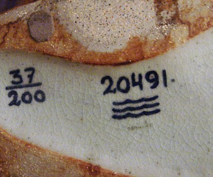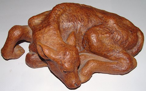 Beskrivelse: Royal Copenhagen Stentøjskalv udført af Gudrun Lauesen. Hun bliver født 1917 og uddanner sig bl.a. under E. Utzon-Frank på billedhuggerskolen, Kunstakademiet i København 1935-1939.