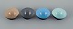 Four small bowls in metal. Brown, grey, blue and mint green. Design by Hermann Krenchel. 2000s. In perfect condition. Signed "Normann Copenhagen" Dimensions: D 8,5 x H 4,0 cm.