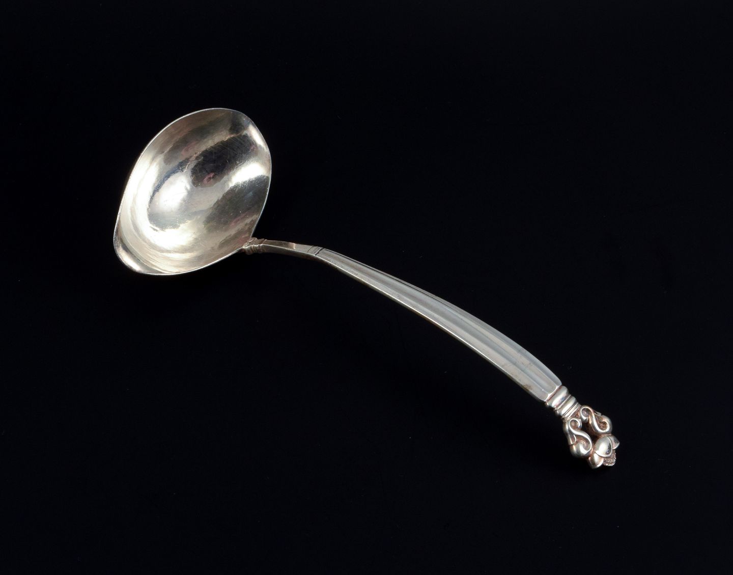 Georg Jensen, Acorn, sauce spoon in sterling silver. Marked after 1945. In perfect condition with minimal signs of use. Marked with English import marks. Dimensions: L 20.0 x D 7.7 cm.