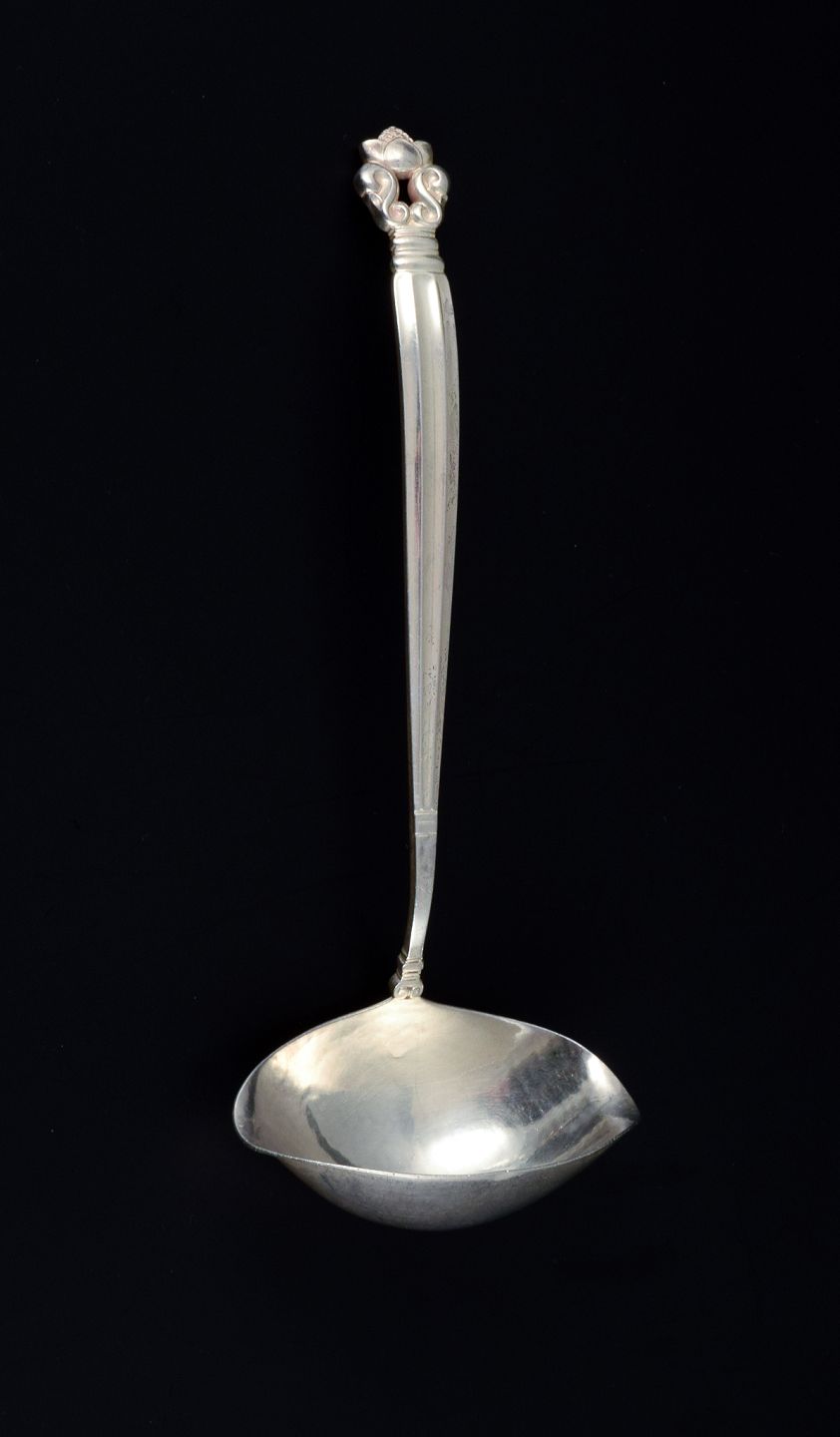 Georg Jensen, Acorn, sauce spoon in sterling silver. Marked after 1945. In perfect condition with minimal signs of use. Marked with English import marks. Dimensions: L 19.7 x D 7.7 cm.