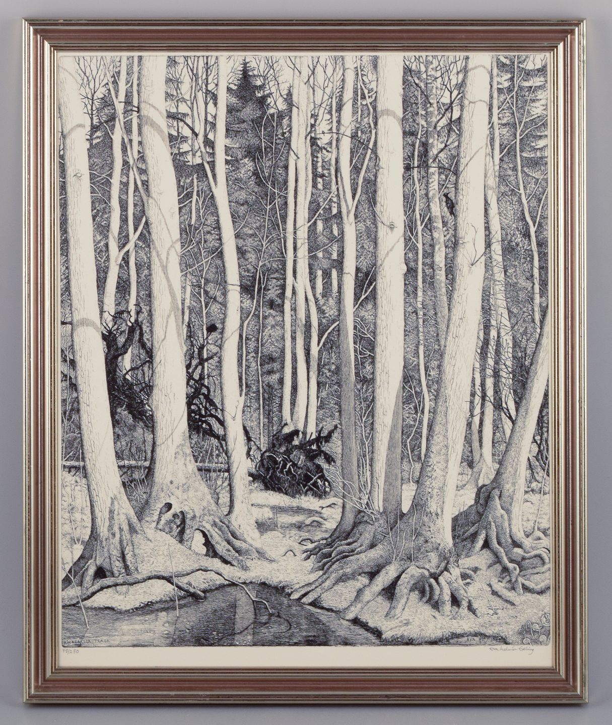 Eva Holmén-Edling (1942), Swedish artist. Woodcut on Japan paper. Forest scene. Signed in pencil. Edition 48/250. In perfect condition. Dimensions: 48.2 cm x 38.7 cm. Total dimensions: 53.5 cm x 44.2 cm.