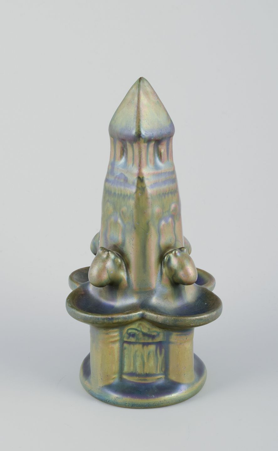 Zsolnay, Hungary, ceramic fountain sculpture. Eosin glaze. 1900s. Perfect condition. Marked. Dimensions: H 14.0 cm. x D 6.5 cm.