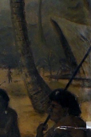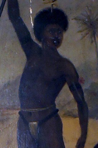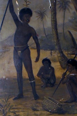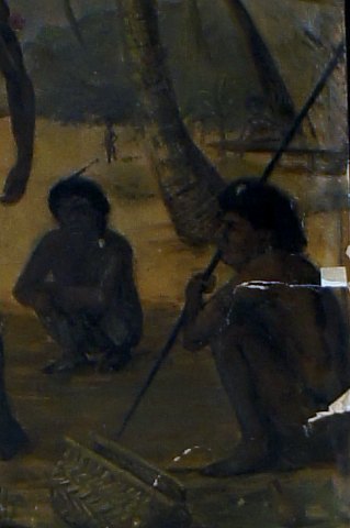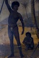 Robert BADEN-POWELL (1857-1941) Olie på karton, ca. 1900. Naturfolk på strand. Signeret på bagsiden : R. Baden Powell, Government House. Måler 31x46 cm. I dårlig stand.