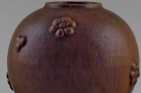Arne Bang. Keramik vase. Stemplet AB 212. Flot glasur i brune nuancer.