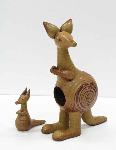 Sjælden Lisa Larsson, Gustavsberg, kænguru med unge. Højde : 25 cm. I god stand.