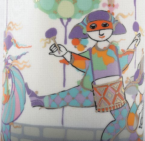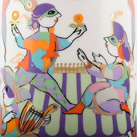 Rosenthal Bjorn Wiinblad "Commedia dell'arte studio line vase in porcelain. Height 28 cm. In perfect condition.