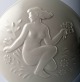 Royal Copenhagen blanc de chine vase, nøgne kvinder i relief. Måler 20 x 17 cm.