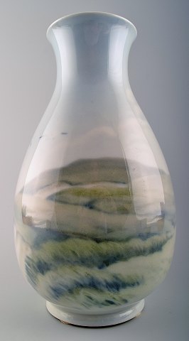 Stor B&G, Bing & Grøndahl vase, klitlandskab ca. 1920´erne. Tidligt Stempel. "SJ" 2. sortering. I perfekt stand. Måler 22 cm.