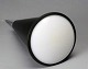 Skærm af sortlakeret aluminium og hvidt plast.