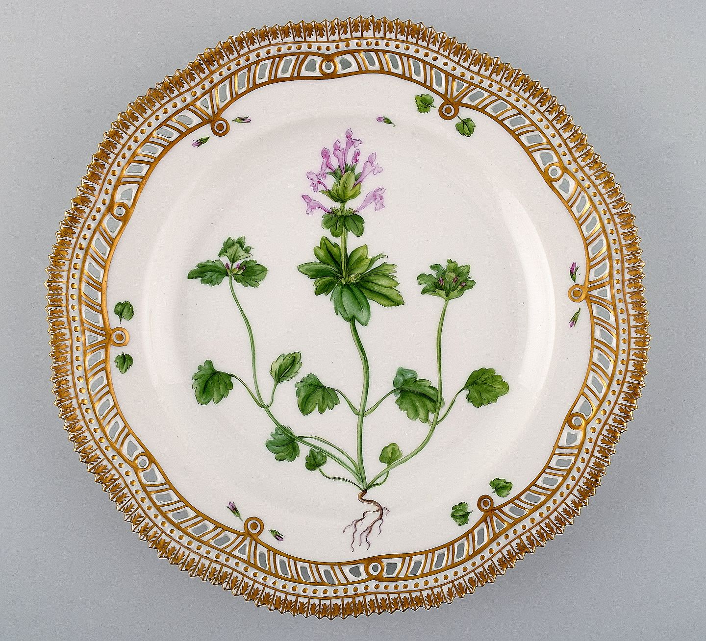 Royal Copenhagen Flora Danica openwork dinner plate Number 20/3553. 25.5 cm. in diameter. Latin name: Laminium intermedium Fr. 1st. factory quality, in perfect condition.