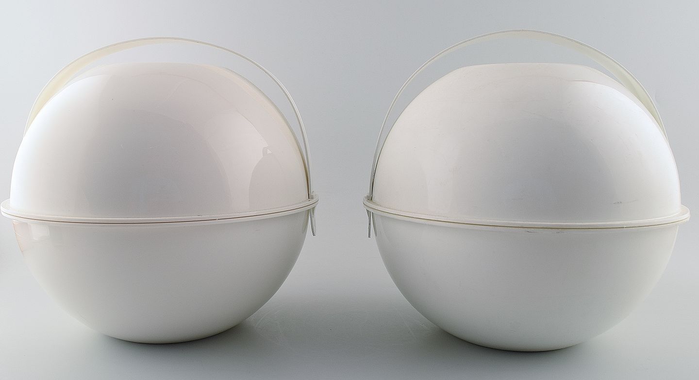 2 Guzzini, Italiensk design, picknic kurve i moderne design. Hårdt plast. Måler 27 x 24 cm. I perfekt stand. Stemplet.