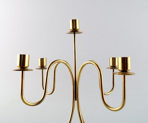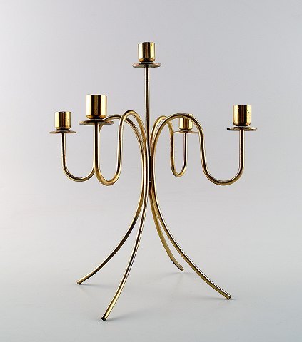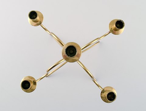 Josef Frank. Fem-armet messing lysestage. Mærket: Made in Sweden. Mål: 23 cm. I perfekt stand. Ca. 1960´erne.