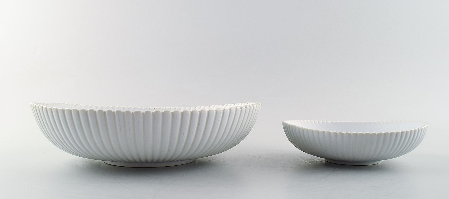 Wilhelm Kage, Gustavsberg, two ceramic bowls. Measures 23 x 6 cm. and 14 x 4 cm. In perfect condition.