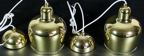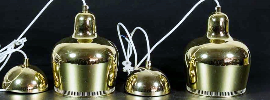 A pair of Alvar Aalto, ceiling pendants in brass. Model 'Golden Bell ", manufactured by Artek. Dimensions: Diameter 17 cm. Height 20 cm. In perfect condition.