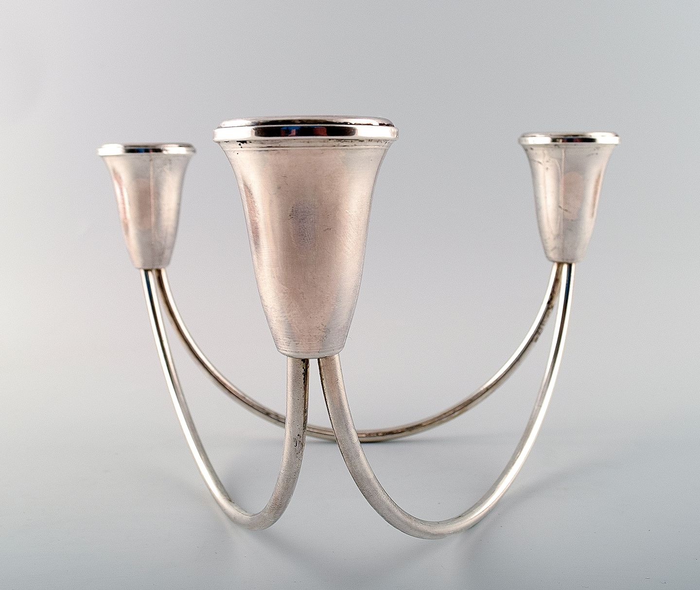 Duchin sterling, Usa, tre-armet lysestage i moderne design. I flot stand. Stemplet 925. Måler 24 x 15 cm.