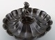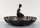 Sjælden Just Andersen Art deco disko metal fad med kvindefigur , nummer D63. 1930´erne. Stemplet. God stand, brugspræg. Måler 12 x 7 cm.