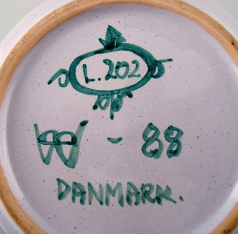Bjørn Wiinblad unika keramik lysestage, rosa og grøn glasur. Måler: 17 cm. x 9,5 cm. Modelnummer L 202. Det blå hus. Dateret 1988. I perfekt stand.