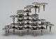 13 design lysestager i hvidmetal, kan samles i moduler. Ustemplet. 1 modul måler 6 x 11 cm. I flot stand.