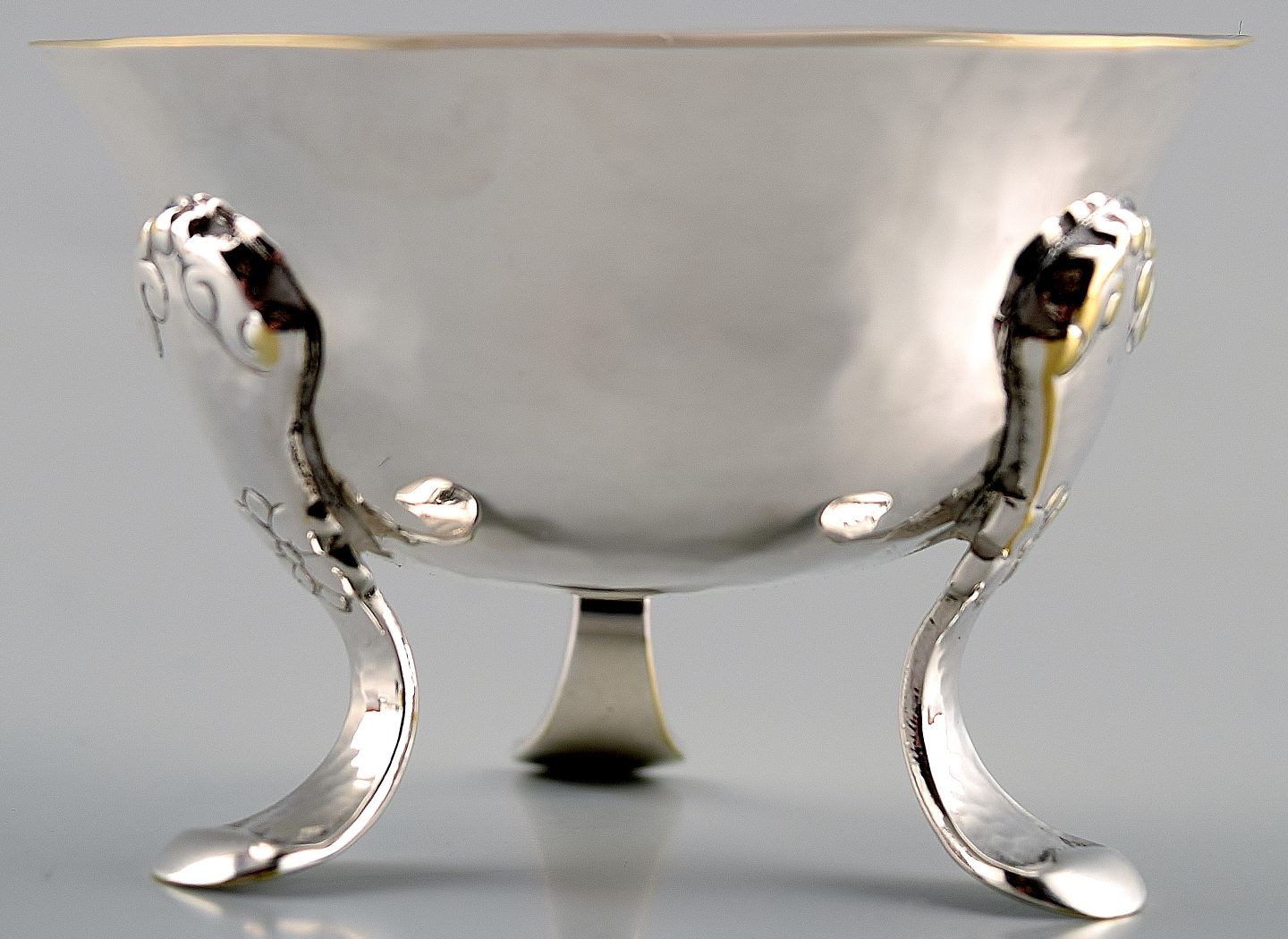 Dansk sølv, saltkar, lille trebenet skål. Stemplet "EK". Tretårnet Måler 6 x 5 cm. I god stand.