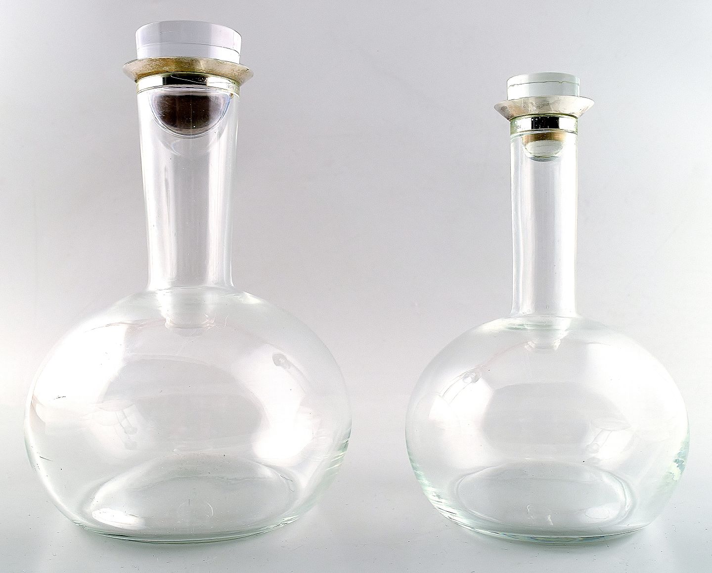 Georg Jensen, 2 Ole Palsby karafler med montering i sterlingsølv. Højde : Største 25 x 15 cm. Originale æsker medfølger. I perfekt stand. Stemplet.