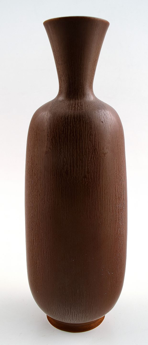 Stor Friberg "Selecta" keramikvase for Gustavsberg. Fantastisk glasur i brune nuancer. Stemplet. Med etiket. Perfekt. 1. sortering. Størrelse: 24 cm.
