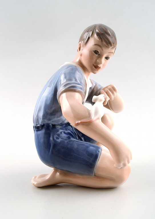 Figurine number 1270, boy with mouse by Jens Peter Dahl Jensen. Rare figurine. 1st. factory quality, in perfect condition. 14 cm. height.