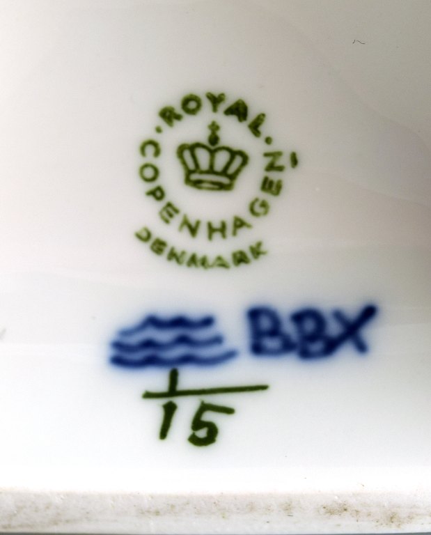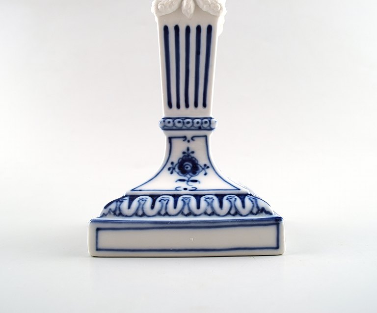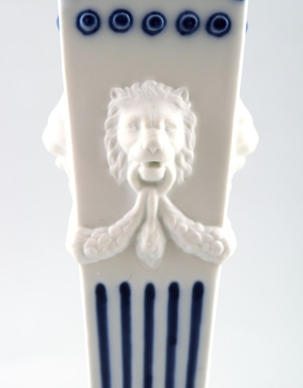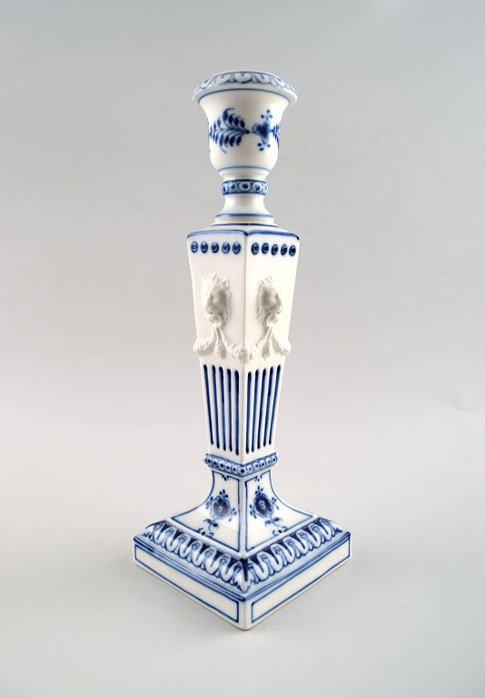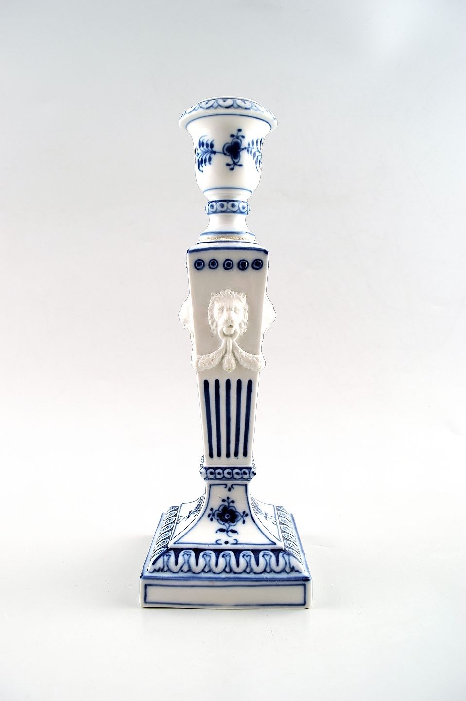 2 Royal Copenhagen musselmalet riflet, lysestager med løvehoveder. 1. Sortering, i god stand. Nr. 1/15 Højde 22,5 cm.