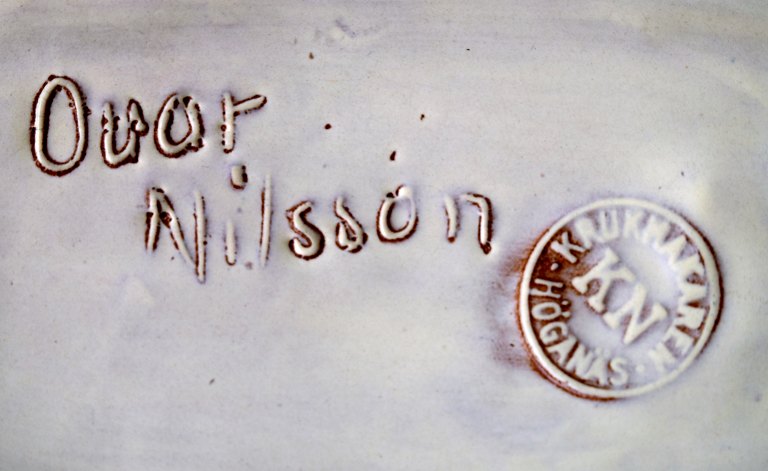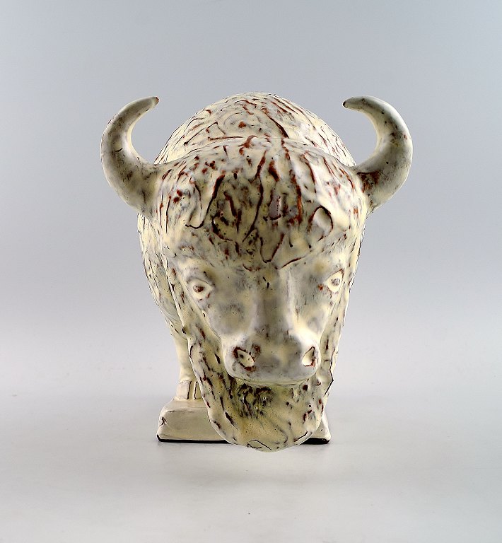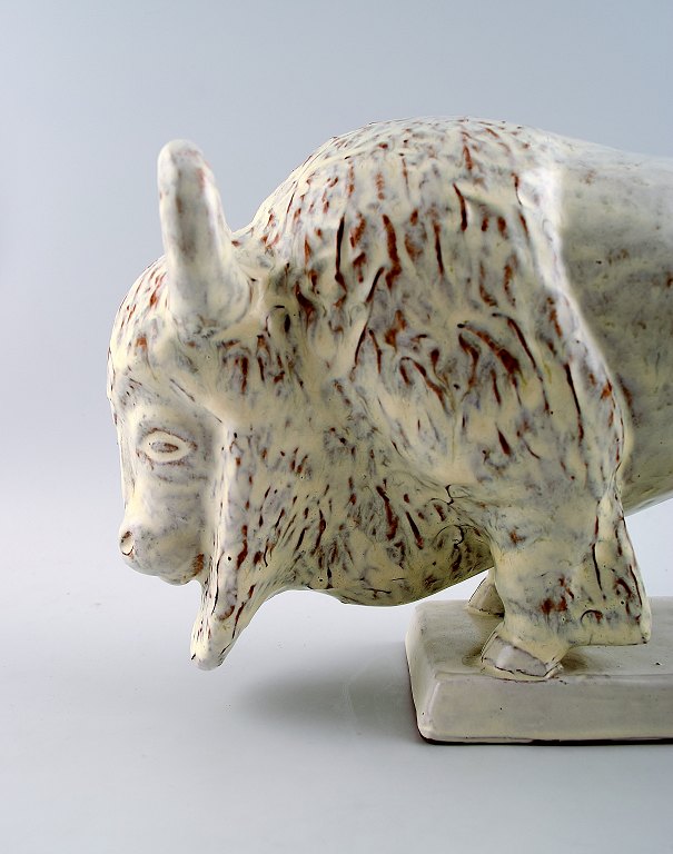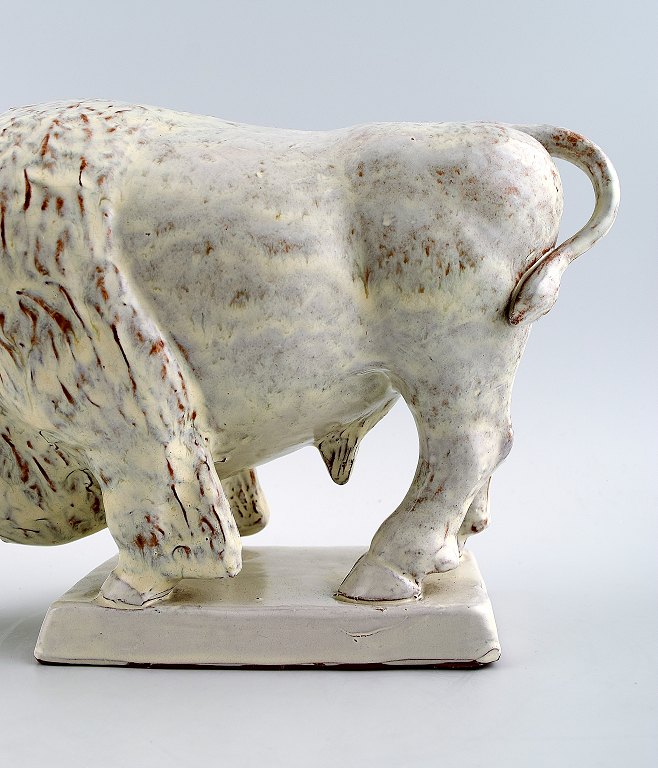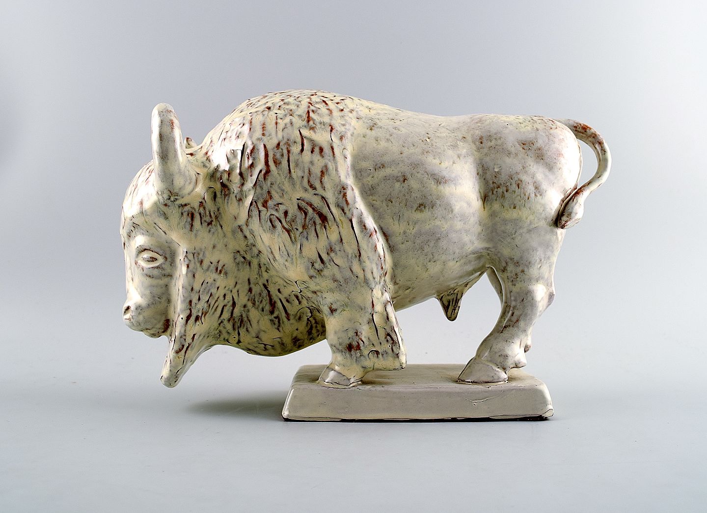 Ovar Nilsson. Bisonokse af lertøj med hvid glasur. Signeret Ovar Nilsson samt mærket Höganäs i bund. Højde 18 cm. Længde 28 cm. I perfekt stand.