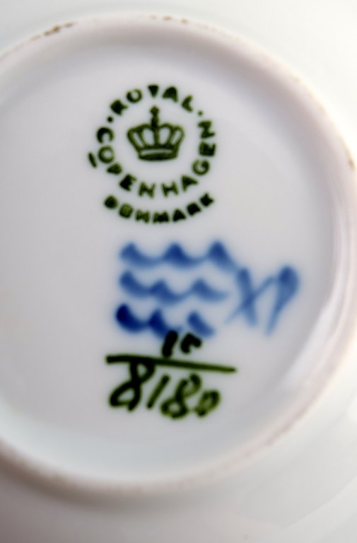 Kgl. Blå blomst flettet Kongelig porcelæn. Royal Copenhagen Blå blomst flettet, 6 Kuvert askebægre. Nummer 10/8180. Diameter 8 cm. 1. Sortering, perfekt stand. Kan også bruges til kuvertsmør.