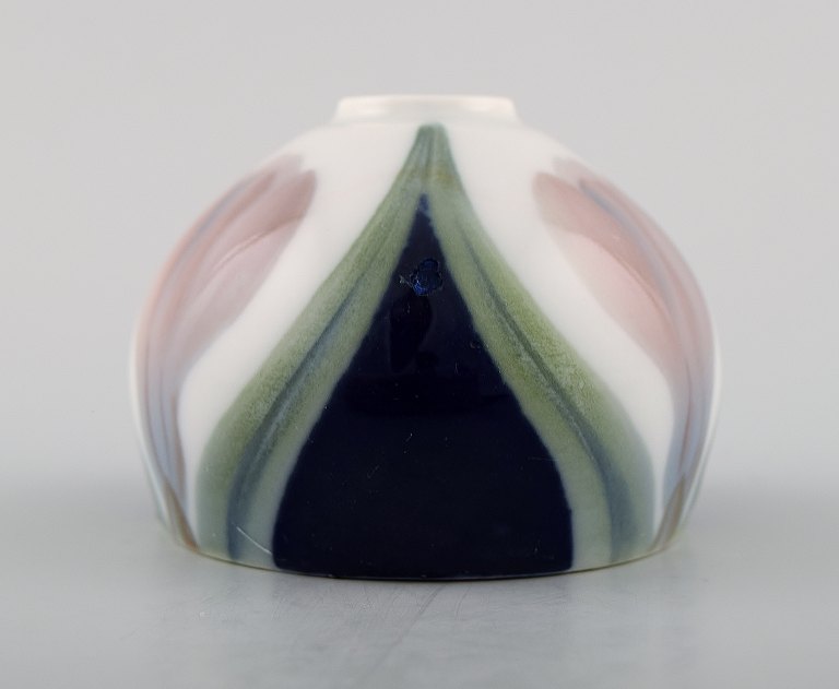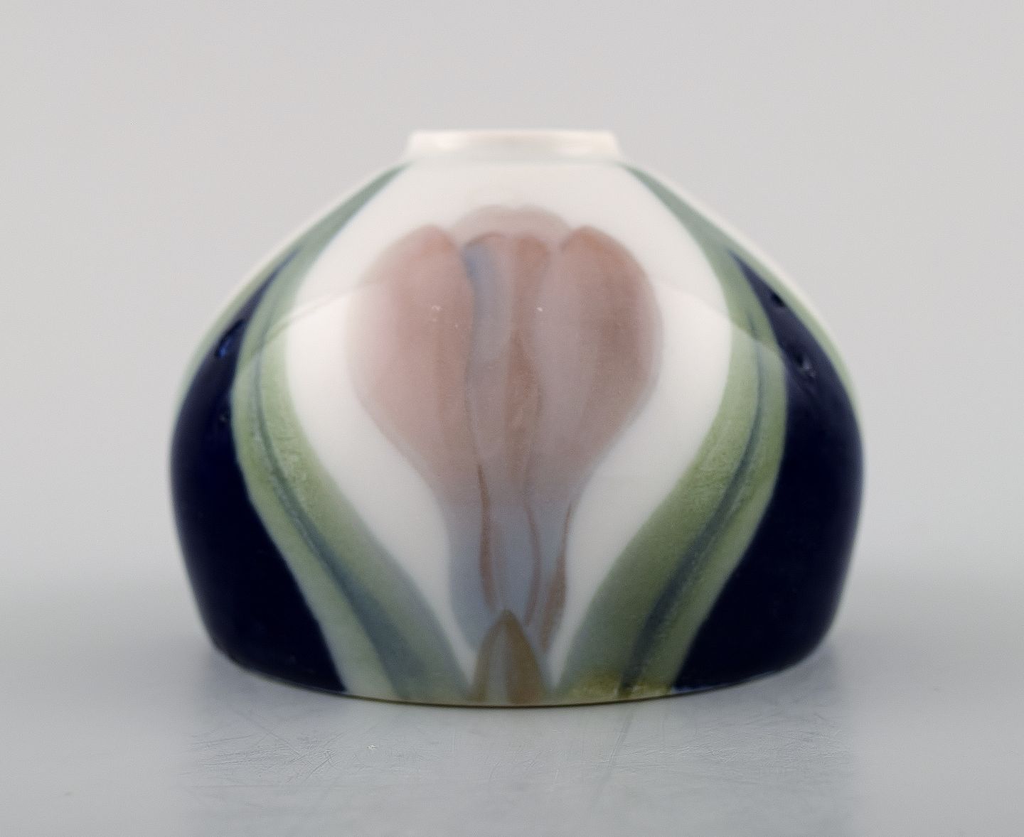 Art nouveau vase af porcelæn, B&G, Bing & Grøndahl, dekoreret med blomst. Sjælden form.